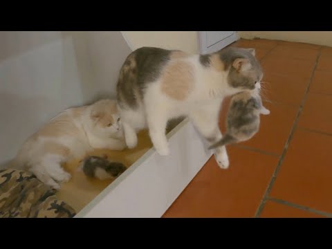The mother cat is not secure when the kittens are with the father cat.(Χιουμοριστικά Στιγμιότυπα με τις παιχνιδιάρικες Γατούλες.Ε.)Καλό Απόγευμα για Όλες και για Όλους,